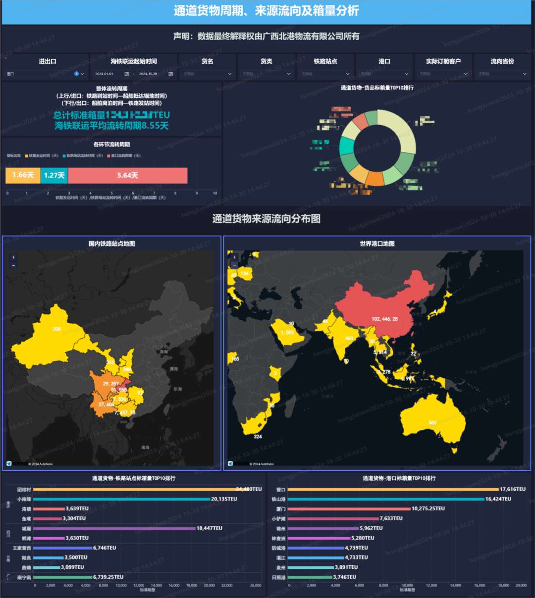 據(jù)了解,基于該平臺(tái)廣西北港物流有限公司構(gòu)建了一個(gè)集實(shí)時(shí)監(jiān)控與深度數(shù)據(jù)分析于一體的數(shù)字化運(yùn)營(yíng)生態(tài)系統(tǒng),通過(guò)可視化手段,實(shí)現(xiàn)了貨源調(diào)查、運(yùn)量分析、市場(chǎng)趨勢(shì)預(yù)測(cè)以及運(yùn)輸瓶頸預(yù)警等功能的一體化,為業(yè)務(wù)開(kāi)展提供了更高效和精確的數(shù)據(jù)支持,提高了運(yùn)營(yíng)效率和決策能力,并為貨物定制了更優(yōu)質(zhì)的物流解決方案。