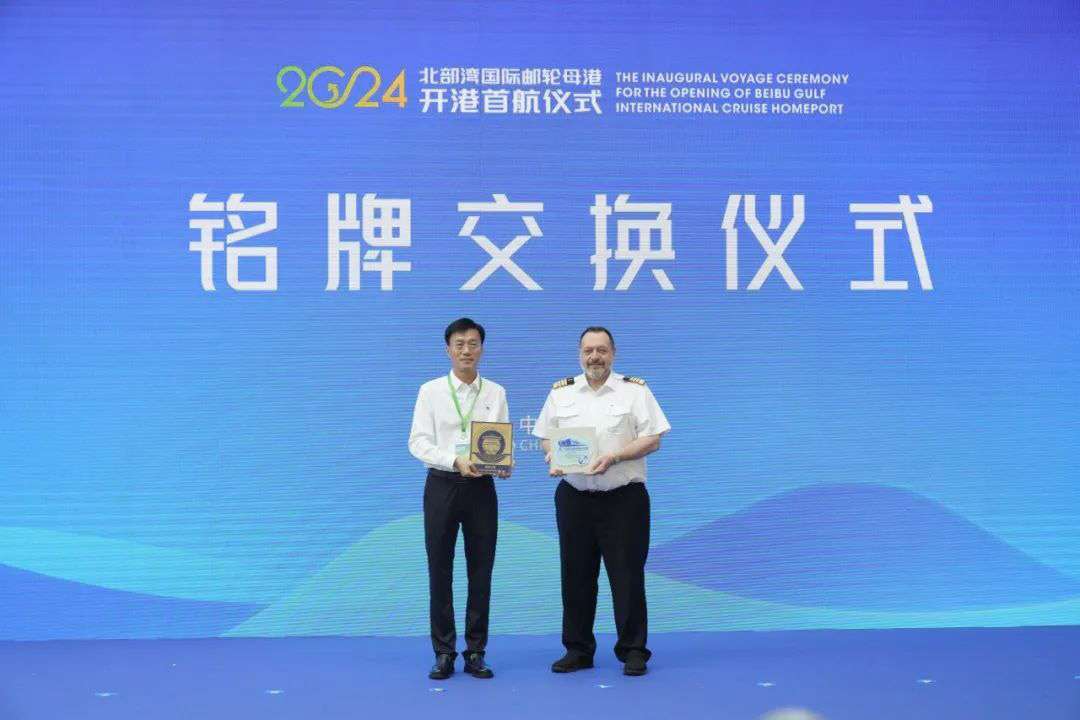現(xiàn)場(chǎng)還進(jìn)行了廣西北部灣郵輪碼頭有限公司與“藍(lán)夢(mèng)之歌”郵輪銘牌交換儀式。自治區(qū)人民政府辦公廳、自治區(qū)文化和旅游廳等有關(guān)部門,北海市委、市政府,北部灣港集團(tuán)、廣旅集團(tuán)、上海藍(lán)夢(mèng)國際郵輪股份有限公司,越南廣寧省文旅廳等有關(guān)單位負(fù)責(zé)人共100多名嘉賓及媒體到場(chǎng)見證。